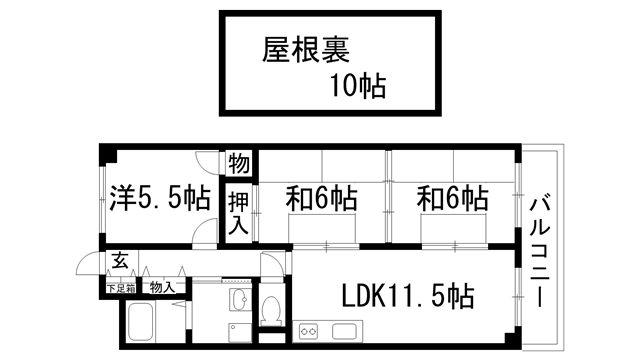 洋室5.5帖、和室6帖、和室6帖、LDK11.5帖 |