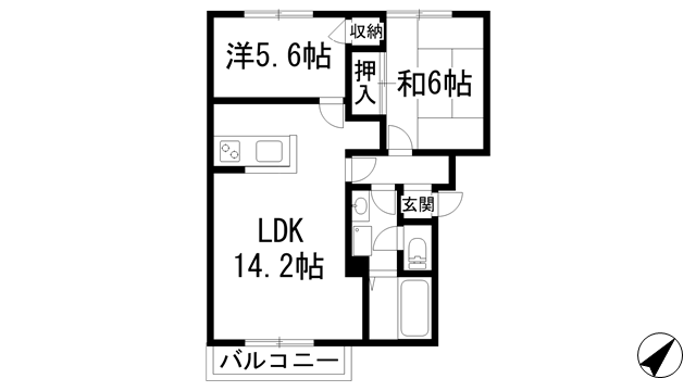 洋室5.5帖、和室6帖、LDK12帖 |